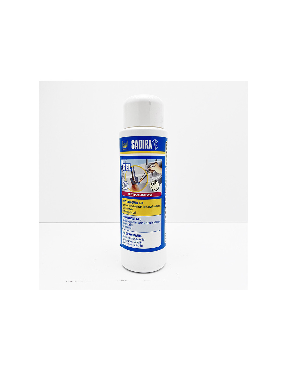 Gel desoxidante Sadira envase 500ml. Elimina manchas de óxido. Fácil y precisa aplicación. Ideal en zonas inclinadas. Ref. 4018