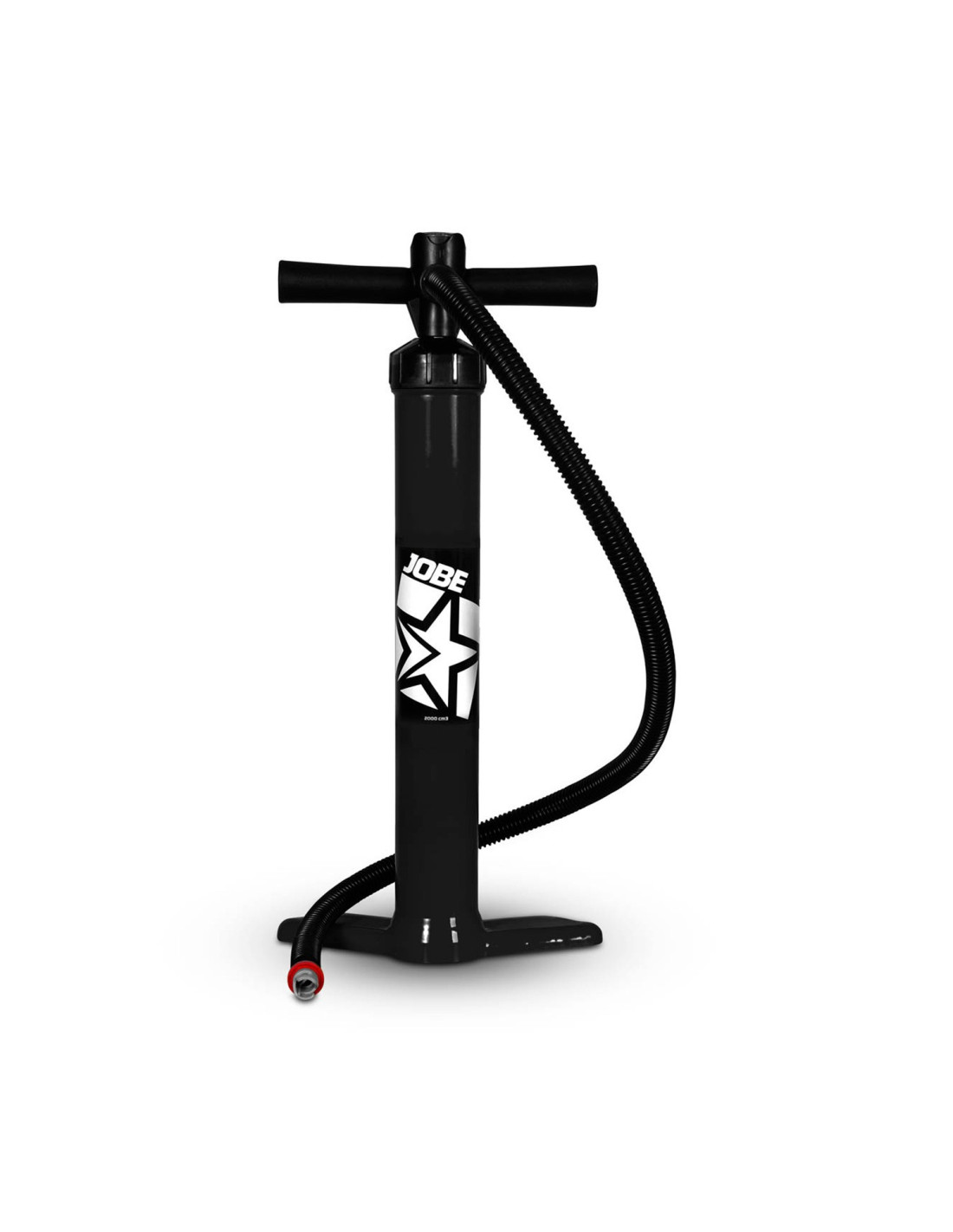 Esta bomba ha sido especialmente desarrollada para SUP y está diseñada para durar. Con el tapón insertado realiza una doble acción, liberando el tapón que transforma en una bomba fuerte de acción única para hinchar a alta presión. Equipado con un eje de aluminio, adaptador, bolsa de transporte de nylon y presión incorporada reemplazable, infla hasta 27 psi.