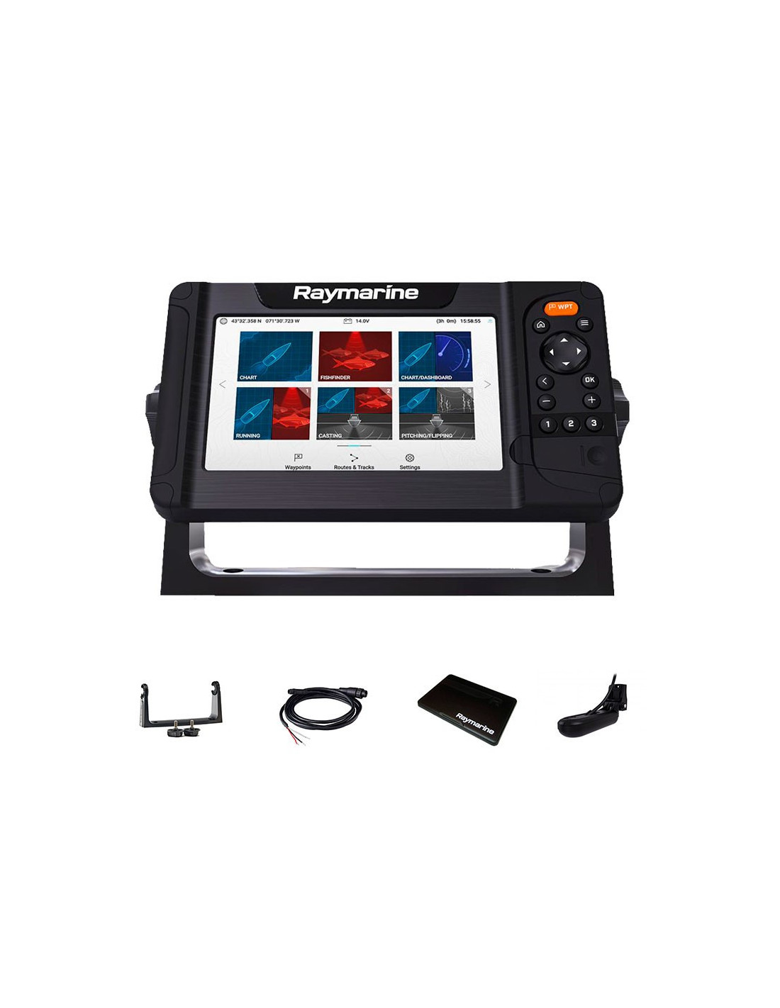 Raymarine Element 7 HV con Transductor HV-100 incorpora una pantalla de 7" asistida por botonera con una resolución de 800 x 480 px de alta visibilidad y con un procesador Quad-Core, que nos permite tener una respuesta rápida de todas sus funciones ademas incluye la tecnología de sonar CHIRP, Hypervision y RealVision 3D con un único canal y una antena interna GPS/GLONASS integrada.